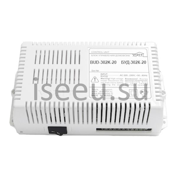 БУД-302K-20 позволяет подключить до 20 абонентов. Объем памяти 600 ключей. Он связан с панелью вызова, блоком коммутации и электромагнитным замком. Количество программируемых ключей на квартиру составляет от 1 до 6 ключей.